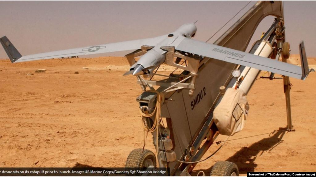 Một máy bay không người lái trinh sát tầm xa ScanEagle trên bệ phóng. Việt Nam vừa đặt mua 6 chiếc loại này trong một hợp đồng trị giá hơn 9,7 triệu USD. (US Marine Corps/Gunnery Sgt Shannon Arledge – Ảnh chụp từ màn hình của TheDefensePost)