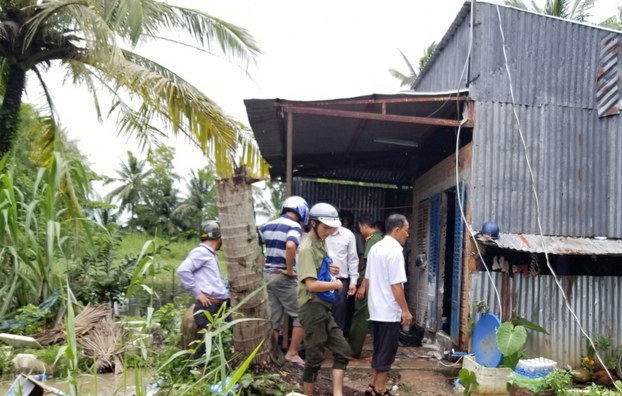 Hiện trường xảy ra sự việc. Photo courtesy: VTC Công an huyện Cái Nước, tỉnh Cà Mau hiện đang khám nghiệm hiện trường, lấy lời khai những người trong gia đình ông Phạm Hoàng Kiếm và truy bắt 2 người bỏ trốn vì gia đình ông Kiếm đã tạt xăng đốt các cán bộ cưỡng chế đất nhà ông vào sáng ngày 7/8.