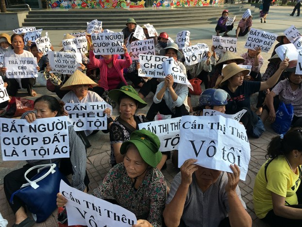Hình minh họa. Những nông dân Dương Nội biểu tình bên ngoài phiên toà xử một người tranh đấu vì đất đai là bà Cấn Thị Thêu ở Hà Nội hôm 20/9/2016. Photo courtesy: Reuters 52 nhà hoạt động người Israel mới đây đã gửi một kiến nghị thư lên Toà án Quận Tel Avis để yêu cầu chính phủ Israel ngừng xuất khẩu vũ khí sang Việt Nam vì những vi phạm nhân quyền ở Việt Nam thời gian qua.