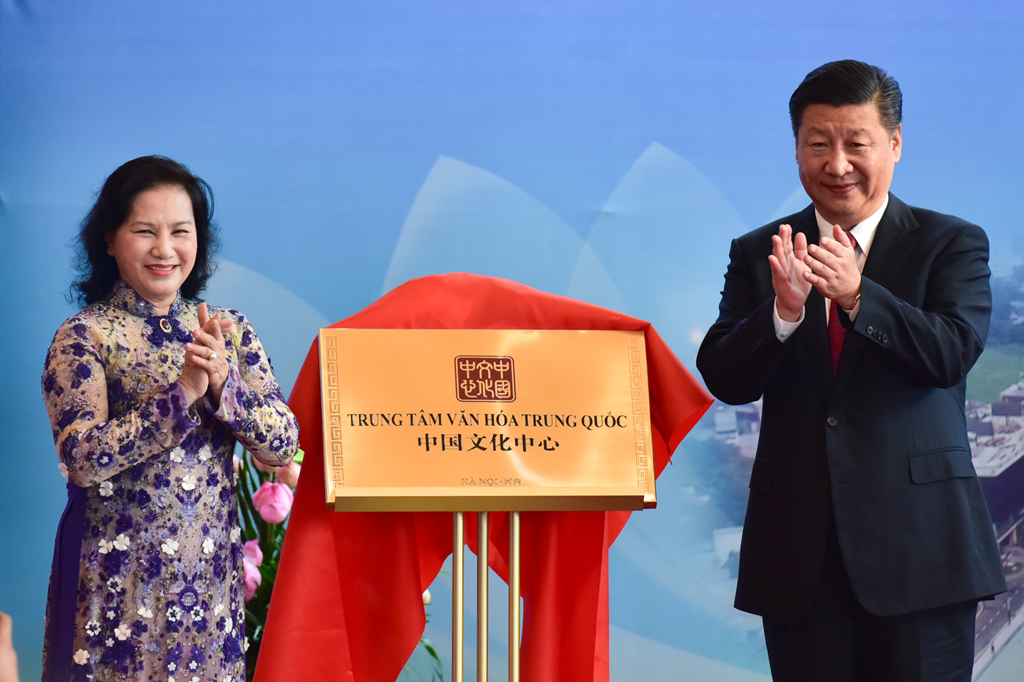 Chủ tịch QH VN Nguyễn Thị Kim Ngân và Chủ tịch nước TQ khai trương Trung tâm Văn hóa TQ ở HN trong chuyến thăm của ông Tập sang VN tháng 11/2017. Photo courtesy: Zing.vn Chủ tịch QH Nguyễn Thị Kim Ngân dẫn đoàn cao cấp gồm cả một phó thủ tướng và nhiều thứ bộ trưởng của Việt Nam sang Trung Quốc để củng cố ‘đối tác chiến lược toàn diện’.