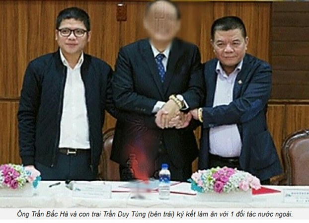 Con trai của ông Trần Bắc Hà (bìa phải) là Trần Duy Tùng (bìa trái), nguyên Chủ tịch Ngân hàng BIDV, bị khởi tố. Photo courtesy: VTC Ông Trần Duy Tùng, con trai nguyên Chủ tịch Hội đồng quản trị Ngân hàng Đầu tư và Phát triển Việt Nam (BIDV) Trần Bắc Hà, bị xác định có dấu hiệu tội vận chuyển trái phép hàng hóa tiền tệ qua biên giới hoặc rửa tiền.