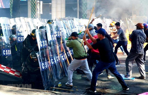 Diễn tập chống bạo động tại TP. Hồ Chí Minh vào ngày 15/12/2019. Photo courtesy: TTXVN Sáng Chủ nhật 15/12/2019, chính quyền thành phố Hồ Chí Minh huy động 4 ngàn người diễn tập chống biểu tình, khủng bố ở hai địa điểm là trung tâm quận 1 (gần tòa Tổng lãnh sự Mỹ) và phi trường Tân Sơn Nhất trong đó có tình huống đốt xe máy và ô tô ngay khu vực trung tâm trước sự chứng kiến của Bí thư Thành ủy Nguyễn Thiện Nhân.