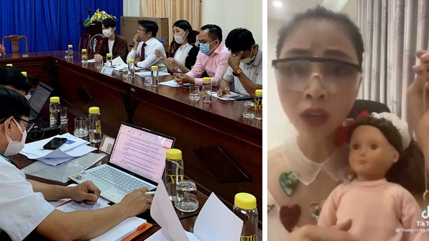 Tiktoker Thơ Nguyễn làm việc với cơ quan chức năng về video “xin vía học giỏi”. Photo courtesy: RFA Sở Thông tin- Truyền thông tỉnh Bình Dương ngày 15/3 tiến hành làm việc với Youtuber Thơ Nguyễn liên quan việc đăng tải video “xin vía học giỏi” trên mạng.