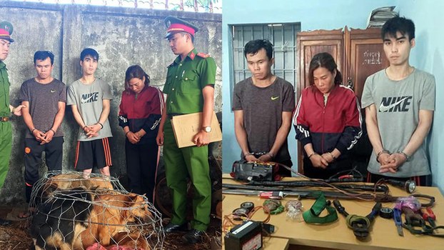 Nhóm đối tượng trộm chó bị công an tỉnh Đắk Nông bắt giữ. Photo courtesy: CAND