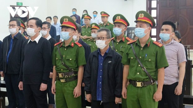 Các bị cáo trong vụ đại án BIDV tại phiên tòa ngày 28/10/2020. Photo courtesy: VOV 12 bị cáo trong vụ án gây thất thoát 1.664 tỷ đồng tại Ngân hàng TMCP Đầu tư và Phát triển Việt Nam (BIDV) bị đề nghị mức án từ 3 đến 19 năm tù giam.