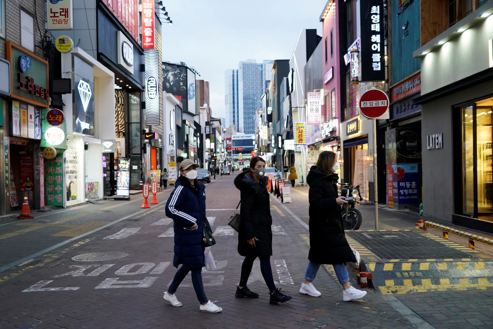 Người dân Hàn Quốc mang khẩu trang di chuyển trên đường phố ở Daegu, Hàn Quốc hôm 21/2/2020. Photo courtesy: Reuters Hà Nội có thể phải đón đến hàng chục ngàn người từ Nam Hàn, nước đang có diễn biến dịch COVID – 19 phức tạp trong những ngày qua và vừa phải nâng mức báo động lên mức cao nhất sau ca tử vong thứ 5 hôm 23/2.