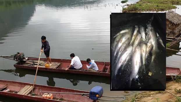 Cơ quan chức năng kiểm tra khu vực cá chết trên sông Mã.. Photo courtesy: Người Đưa Tin / RFA Chủ tịch Ủy ban Nhân dân tỉnh Thanh Hóa vào ngày 7/4 vừa có quyết định tạm đình chỉnh 4 cơ sở sản xuất giấy và vàng mã tại khu vực huyện Quan Hóa và huyện Bá Thước do xả thải trực tiếp ra sông Mã khiến cá chết hàng loạt.