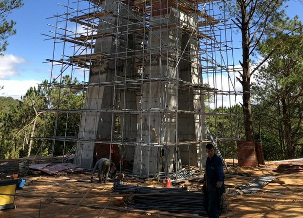 Trụ cầu kính được chủ đầu tư xây dựng. Photo courtesy: Zing Ủy ban Nhân dân (UBND) thành phố Đà Lạt ngày 15/1 ra quyết định đình chỉ thi công trái phép đối với cầu đáy kính cao 28m trong danh thắng quốc gia Thung lũng Tình yêu. Báo trong nước loan tin trong cùng ngày.
