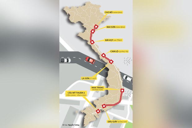 Bản đồ cao tốc Bắc – Nam. Photo courtesy: Tổng cục Đường bộ Việt Nam