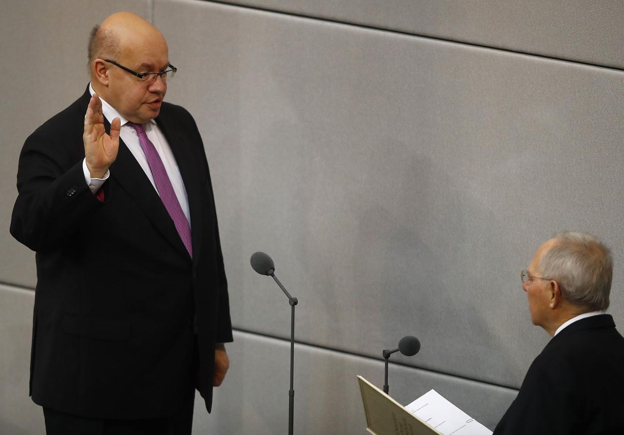 Bộ trưởng Kinh tế Đức, ông Peter Atlmaier khi tuyên thệ nhậm chức hồi tháng 3.2018. Photo Courtesy: REUTERS/Kai Pfaffenbach
