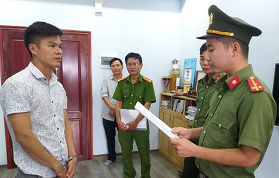 Cơ quan công an tiến hành bắt giữ Phan Văn Lợi.. Photo courtesy: VOV Toà án Nhân dân huyện Nghi Xuân tỉnh Hà Tĩnh đã tuyên phạt 5 năm tù đối với ông Phan Văn Lợi, người bị mệnh danh là “ông trùm” trong đường dây tổ chức đưa người vượt biên ra nước ngoài.