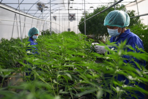 Ảnh minh họa. Công nhân chăm sóc cây cần sa tại trại trồng cần sa. Photo courtesy: Reuters