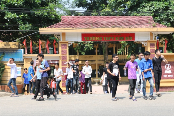 Kỳ thi THPT 2019 ở một trường trung học thuộc tỉnh Hòa Bình. Photo courtesy: Sở Giáo Dục Đào Tạo Hòa Bình Ủy ban kiểm tra tỉnh Hòa Bình vừa đề nghị kỷ luật 5 đảng viên là lãnh đạo tỉnh, có con được nâng điểm trong kỳ thi tốt nghiệp THPT 2018. Truyền thông trong nước loan tin này hôm 2/8.
