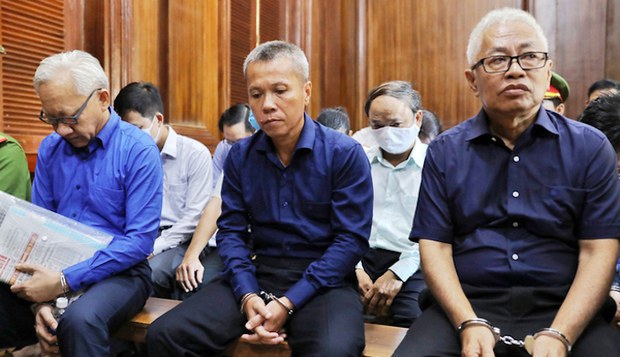 Hình minh hoạ. Ông Trần Phương Bình (ngoài cùng bên phải) trong phiên toà ở TP Hồ Chí Minh hôm 23/6/2020. Photo courtesy: cand.com,vn Phiên xử phúc thẩm ông Trần Phương Bình, cựu Tổng giám đốc Ngân hàng TMCP Đông Á – DAB, cùng những người kháng cáo khác vào sáng 10/5 bị tạm hoãn.