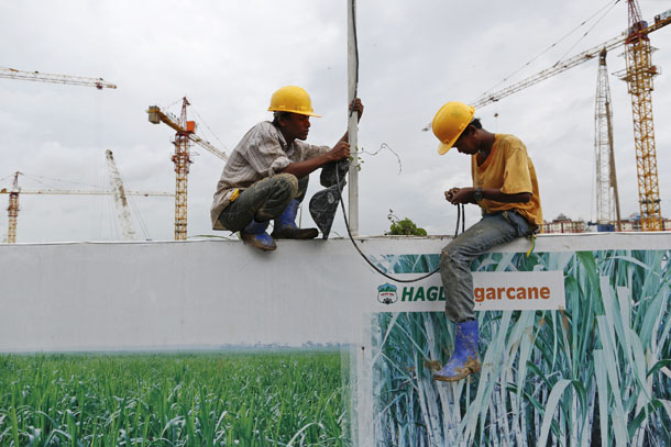 Nhân viên đang làm việc tại dự án của tập đoàn Hoàng Anh Gia Lai của Việt Nam tại Yangon hồi năm 2013. Photo Courtesy: REUTERS/Soe Zeya Tun Hơn 740 hecta đất được Chính phủ Campuchia cấp cho tập đoàn Hoàng Anh Gia Lai của Việt Nam từ 10 năm trước để đầu tư trồng cao su sẽ bị thu hồi để trả cho cộng đồng người bản địa địa phương.