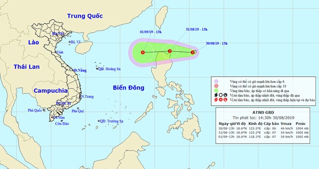 Áp thấp nhiệt đới gần Biển Đông ngày 30/8/2919. Photo courtesy: Trung tâm Dự báo Khí Tượng Thủy Văn Việt Nam