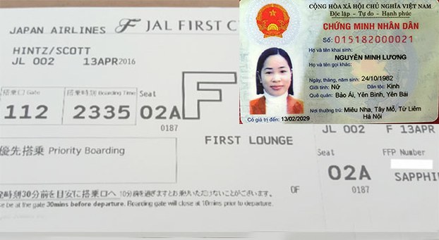 Chứng minh Nhân dân của bà Nguyễn Minh Lương. Photo courtesy: CAND Tòa án Nhân dân Thành phố Hà Nội hôm 4/11 tuyên bà Nguyễn Minh Lương (sinh năm 1982, trú tại phường Tây Mỗ, quận Nam Từ Liêm) 15 năm 6 tháng tù vì chiếm đoạt hơn 867 triệu đồng tiền đặt mua vé máy bay.