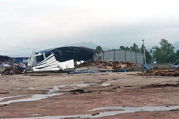 Hiện trường nhà xưởng gỗ Công ty Kiều Thi sau khi bị lốc xoáy quét qua hôm 10/6/2020. Photo courtesy: vinhphuc.gov,vn