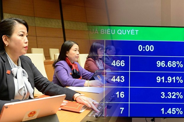 Luật BVMT sửa đổi đã được thông qua với đa số phiếu tán thành từ các đại biểu. Photo courtesy: binhthuanonline/rfa Quốc hội Việt Nam chính thức thông qua Luật bảo vệ môi trường (sửa đổi) với 91,91% tổng số đại biểu quốc hội tán thành.