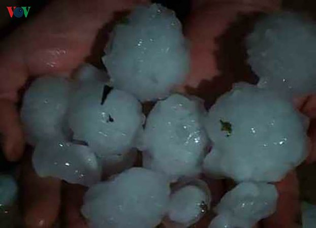 Mưa đá có đường kính 4-5 cm tại thành phố Lai Châu tối ngày 17/03/2020. Photo courtesy: VOV Một trận mưa đá vào rạng sáng ngày 18/3 gây thiệt hại tại 4 tỉnh phía Bắc bao gồm Lào Cai, Yên Bái, Lai Châu và Phú Thọ. Trong đó, tỉnh Lào Cai được ghi nhận bị thiệt hại nặng nề nhất.