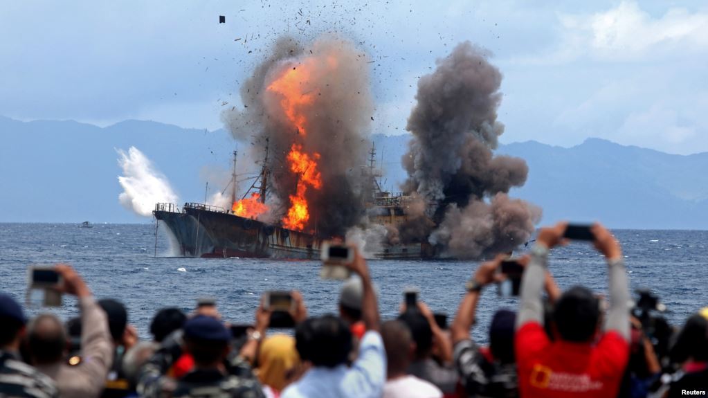 Một vụ đánh chìm tàu cá nước ngoài của Nam Dương hồi năm 2017. Photo courtesy: Reuters