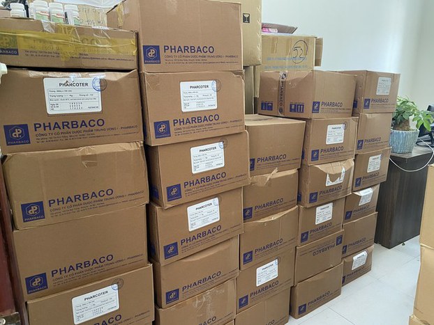 Tang vật mà cơ quan chức năng thu giữ gồm 28 thùng giấy bên trong chứa gần 7400 lọ thuốc ho nhãn hiệu Pharcoter bị xác định có dấu hiệu làm giả; và 86 thùng giấy khác chứa nhiều loại thuốc tây, thực phẩm chức năng, khẩu trang y tế không có hóa đơn, chứng từ hợp lệ.