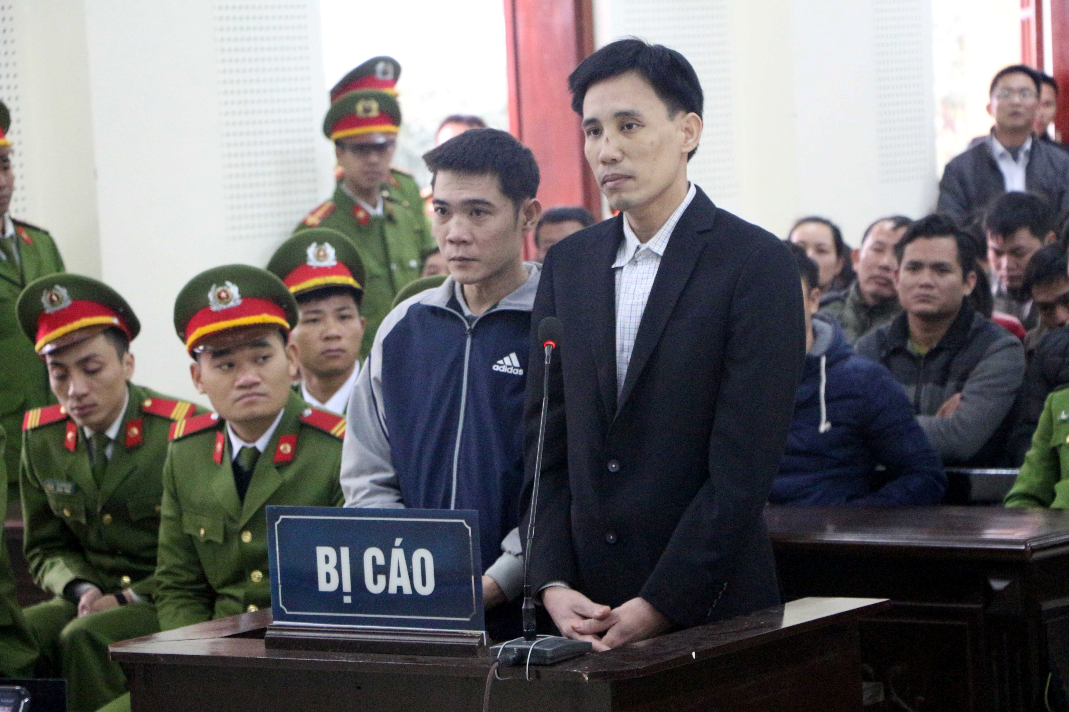 Ông Hoàng Đức Bình (phải) và ông Nguyễn Nam Phong tại phiên tòa tại Nghệ An hôm 6.2.2018. Photo Courtesy: Reuters Nhà hoạt động Hoàng Đức Bình (còn được biết với tên Hoàng Bình) vừa bị tuyên tổng cộng 14 năm tù vì vi phạm hai Điều 257, 258 Bộ luật Hình sự trong phiên tòa diễn ra hôm 6.2 tại thành phố Vinh. Với mỗi tội danh, ông Bình bị phạt 7 năm tù.