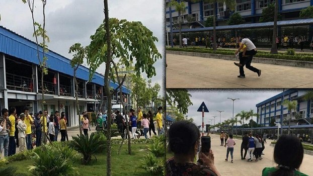 Các công nhân của công ty Golden Victory Việt Nam đang được đưa đi cấp cứu. Photo courtesy: RFA Hàng chục công nhân đang làm việc tại Công ty Golden Victory Việt Nam phải nhập viện cấp cứu vì có biểu biện buồn nôn, chóng mặt khi đang việc tại xưởng của nhà máy.