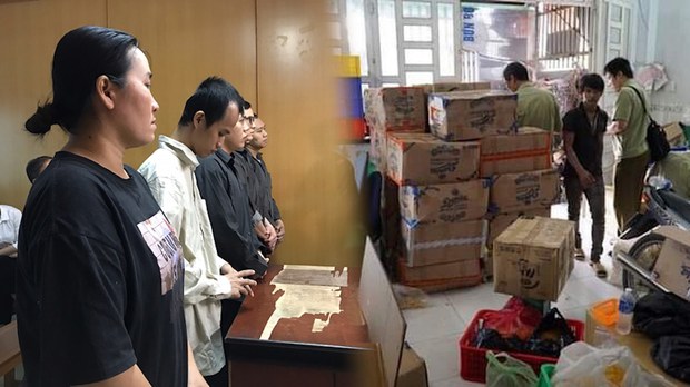 Các bị cáo của vụ án sản xuất và tiêu thụ hàng giả. Photo courtesy: RFA Toà án Nhân dân TPHCM ngày 12/1 tuyên phạt băng nhóm chuyên làm giả các mặt hàng bao cao su và gel bôi trơn bán ra thị trường với tổng giá trị lên tới hàng tỷ đồng.