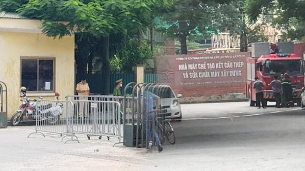 Cơ quan chức năng phong tỏa hiện trường vụ nổ. Photo courtesy: RFA Một vụ nổ lớn xảy ra vào sáng ngày 4/9 tại nhà máy thép Licogi 12 tại Khu công nghiệp Phú Thị, huyện Gia Lâm, Hà Nội khiến 1 người thiệt mạng và 2 người khác bị thương.