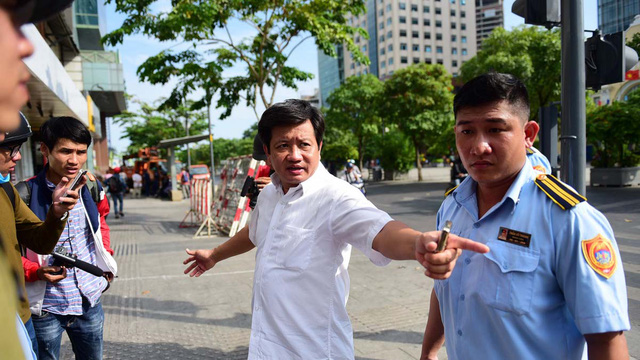 Ông Đoàn Ngọc Hải (giữa) trong một lần xuống đường chỉ đạo xử lý trật tự lòng lề đường. Photo Courtesy: HỮU THUẬN