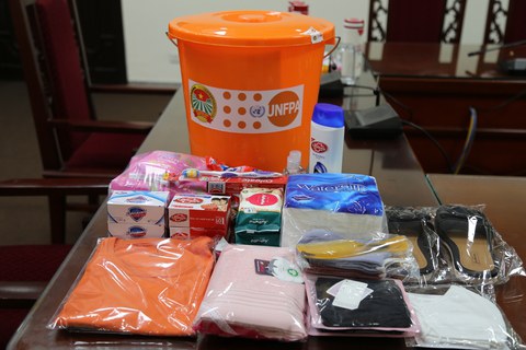 Bộ đồ dùng cứu trợ khẩn cấp của UNFPA cung cấp nhằm giúp phụ nữ và trẻ em gái. Photo courtesy: UNFPA Quỹ Dân số Liên hợp quốc tại Việt Nam (UNFPA) hỗ trợ thêm 800.000 Mỹ kim nhằm giúp phụ nữ và trẻ em gái bị ảnh hưởng bởi lũ lụt tại 8 tỉnh, thành phố miền Trung.