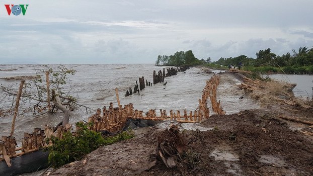 Trong cùng ngày 6/8, Chánh Văn phòng Ban Chỉ huy phòng chống thiên tai và tìm kiếm cứu nạn tỉnh Cà Mau cho biết đang xảy ra tình trạng sạt lở đê ở khu vực biển phía Tây của tỉnh này và báo động nguy cơ vỡ đê rất cao.
