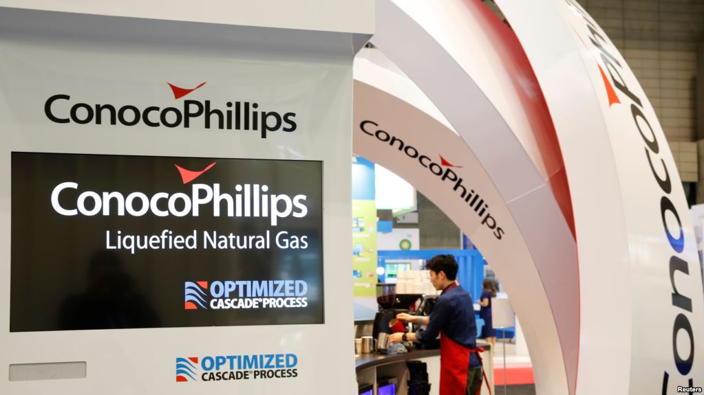Một gian hàng với logo của ConocoPhillips xuất hiện tại một sự kiện về dầu khí ở Nhật Bản hồi tháng Tư năm 2017. Photo courtesy: Reuters