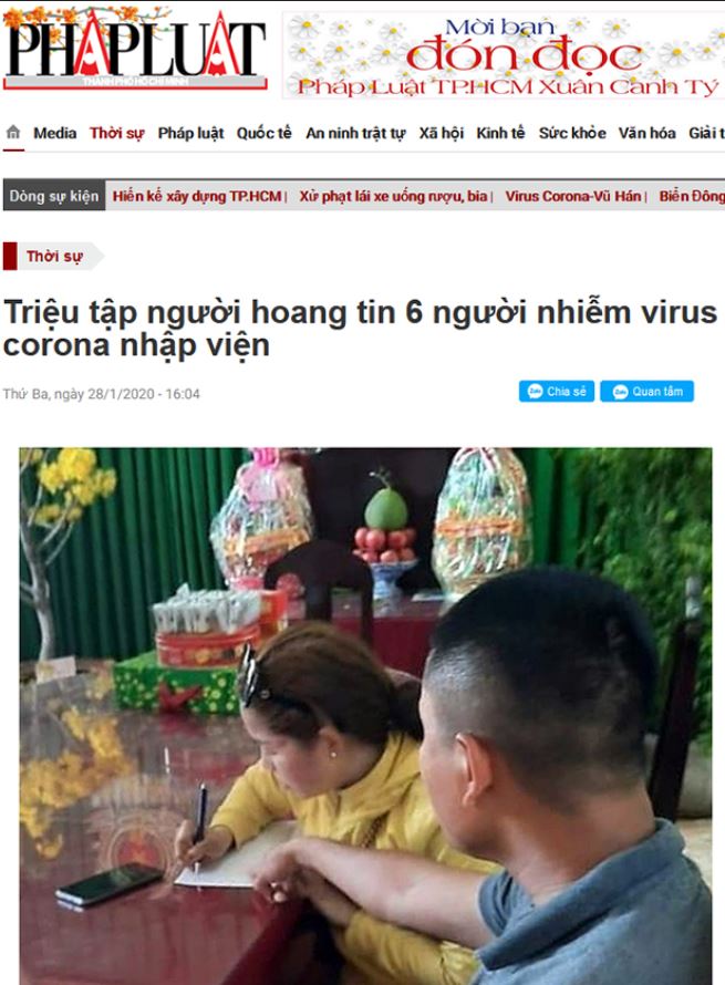Vào hôm 27/1, Phó Thủ tướng Vũ Đức Đam yêu cầu Bộ Công an xử lý nghiêm các trường hợp đưa tin sai sự thật liên quan virus corona tại Việt Nam.