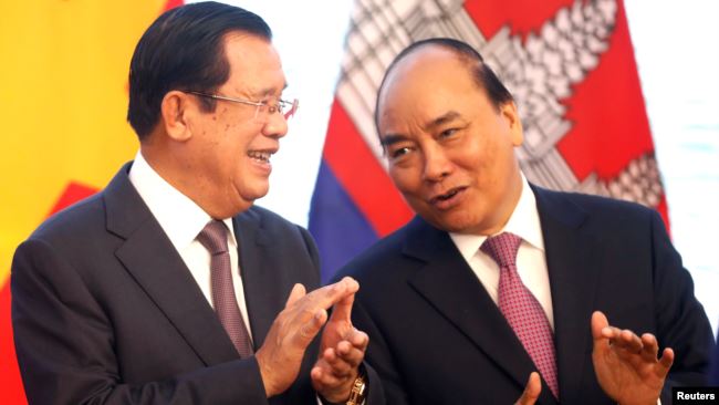 Thủ tướng Campuchia Hun Sen (trái) và Thủ tướng Nguyễn Xuân Phúc tại sự kiện liên quan đến vấn đề phân định biên giới giữa hai nước ở Hà Nội vào ngày 4/9/2019. Photo courtesy: Reuters