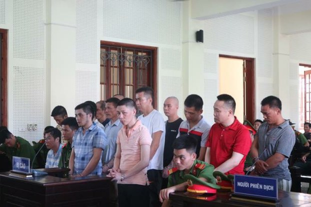 Các bị cáo tại phiên tòa.. Photo courtesy: Bao Phap Luat Tòa án Nhân dân tỉnh Nghệ An vào ngày 17/7 tuyên án tử hình đối với cựu thiếu tá công an thành phố Hồ Chí Minh cùng 4 đồng phạm tham gia đường dây buôn bán ma túy xuyên quốc gia với quy mô lớn.