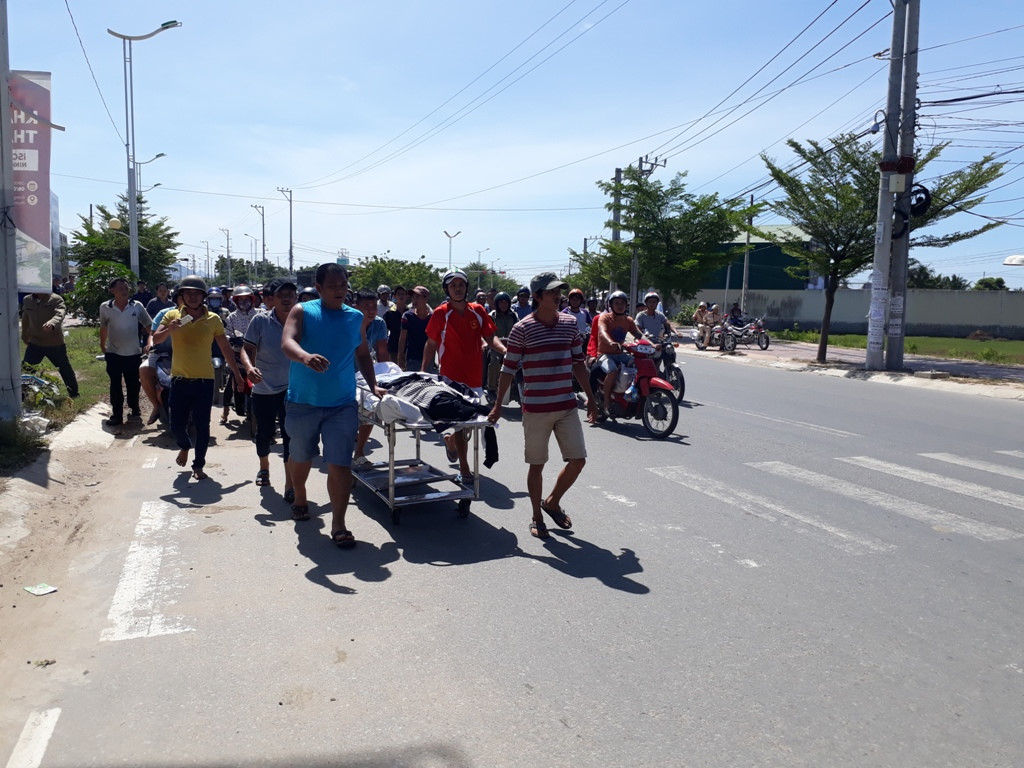 Người thân nạn nhân đẩy thi thể ngoài phố để phản đối cái chết thất thường này. Photo Courtesy: Thiện Nhân