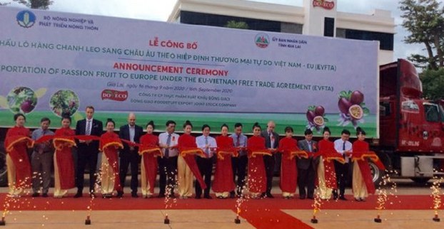 Vào ngày 16 tháng 9, Bộ Nông nghiệp và Phát triển Nông thôn Việt Nam đã tổ chức lễ công bố xuất khẩu lô chanh dây đầu tiên của Việt Nam sang Châu Âu theo Hiệp định Thương mại Tự do Việt Nam – Liên minh Châu Âu (EVFTA). Photo courtesy: mard.gov.vn Bộ Nông nghiệp và Phát triển Nông thôn Việt Nam vừa cho biết các mặt hàng xuất khẩu bao gồm thanh long, cà phê, dừa, bưởi và chanh dây… bắt đầu xuất khẩu nông sản sang thị trường châu Âu theo Hiệp định Thương mại Tự do Việt Nam – EU (EVFTA).