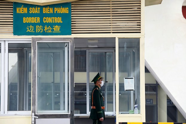 Hình minh hoạ. Một người lính biên phòng đeo khẩu trang phòng dịch ở cửa khẩu Hữu Nghị, tỉnh Lạng Sơn trên biên giới với Trung Quốc hôm 20/2/2020. Photo courtesy: Reuters Truyền thông trong nước hôm 24/7 cho biết an ninh sân bay ở Cảng Hàng không Quốc tế Nội Bài, Hà Nội vào tối ngày 24/7 đã phát hiện 2 hành khách Trung Quốc mang giấy tờ giả có tên Việt Nam định lên máy bay đi TP Hồ Chí Minh. Cả hai người trước đó đã nhập cảnh lậu vào Việt Nam qua đường tiểu ngạch ở tỉnh Hà Giang.