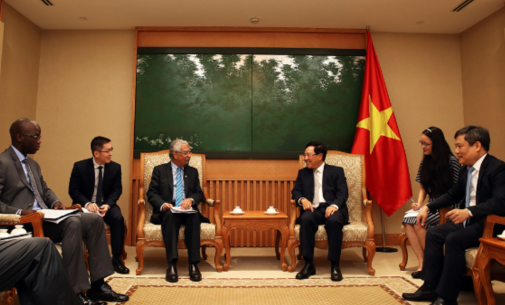 Phó Thủ tướng-Bộ trưởng Ngoại giao Phạm Bình Minh tiếp Điều phối viên Thường trú LHQ tại Việt Nam Kamal Malhotra và Giám đốc Quốc gia của Ngân hàng Thế giới tại Việt Nam Ousmane Dione. Photo courtesy: baochinhphu.vn Phó Thủ tướng-Bộ trưởng Ngoại giao Phạm Bình Minh bày tỏ mong muốn tiếp tục được các nhà tài trợ quốc tế hỗ trợ để tiếp cận nguồn vốn ODA (vốn Hỗ trợ phát triển chính thức), đồng thời cam kết sẽ kiểm tra và yêu cầu các bộ ngành báo cáo, không để tái diễn tình trạng chậm trễ trong việc ký kết và tiếp nhận các khoản viện trợ không hoàn lại.