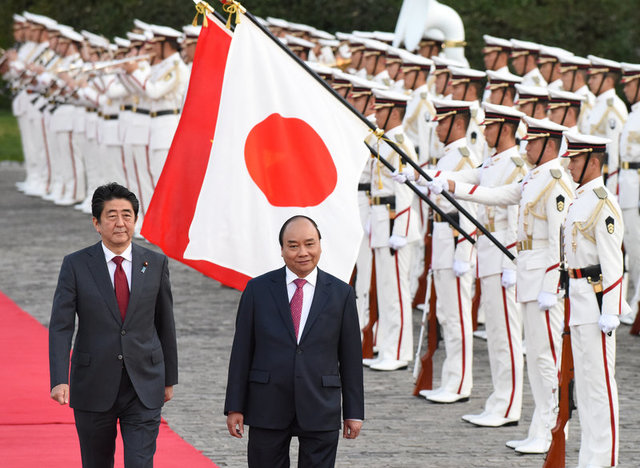 Thủ tướng Nguyễn Xuân Phúc được Thủ tướng Shinzo Abe đón trong chuyến thăm Nhật Bản. Photo Courtesy: Reuters Thủ tướng Việt Nam Nguyễn Xuân Phúc hôm 26 tháng 6 lên tiếng hoan nghênh chương visa cho lao động nhập cư mới của Nhật Bản và kêu gọi hai nước hợp tác hơn nữa trong lĩnh vực này. Tờ Nikkei Asian Review loan tin này hôm 27/6.