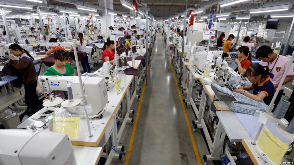 Công nhân làm việc tại một xưởng may mặc ở tỉnh Vĩnh Phúc. Photo Courtesy: Reuters Thỏa thuận thương mại với Liên minh châu Âu (EU) dự kiến sẽ được phê chuẩn trong năm nay sẽ thúc đẩy tăng trưởng của nền kinh tế xuất khẩu của Việt Nam mà không cần đến sự trợ giúp từ thị trường Mỹ, các nhà phân tích nói.
