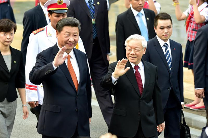 Ông Nguyễn Phú Trọng từng nồng nhiệt chào đón chính thức Tổng bí thư, Chủ tịch nước Trung Quốc Tập Cận Bình nhân dịp ông Tập Cận Bình sang thăm chính thức Việt Nam, ngày 5.11.2015. Photo Courtesy: Ngọc Thắng Lãnh đạo và các quan chức cao cấp của Trung Quốc hai ngày qua đã gặp riêng rẽ với Chủ tịch Việt Nam Trần Đại Quang, cam kết củng cố “mối quan hệ đồng chí và anh em”, theo Tân Hoa Xã.