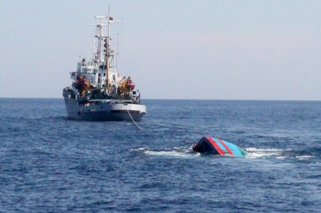 chìm được tàu cứu hộ kéo về. Photo Courtesy: Minh Hoàng