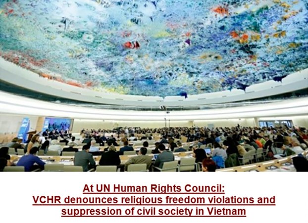 Hai tổ chức VCHR và LHQ, vào ngày 18/09/19 tố cáo với LHQ về tình trạng Việt Nam đàn áp nhân quyền và tự do tôn giáo có hệ thống. Photo courtesy: VCHR Hai tổ chức Ủy ban Bảo vệ Quyền Làm Người Việt Nam (VCHR) và Hành động Chung Cho Nhân quyền (AEDH) lên tiếng tố cáo với Liên Hiệp Quốc (LHQ) về tình trạng Việt Nam đàn áp nhân quyền và tự do tôn giáo có hệ thống, cũng như từ chối mọi cuộc đối thoại với các tổ chức xã hội dân sự trong và ngoài nước.