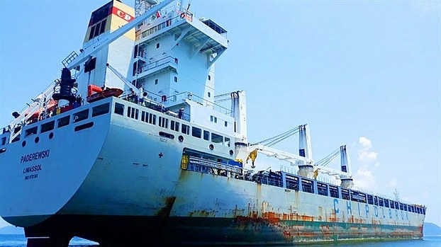 Tàu Paderewski neo đậu trái phép trong vùng nước Việt Nam. Photo courtesy: Bao Bien Phong Bộ Chỉ huy Bộ đội Biên phòng tỉnh Quảng Nam chiều 31/8 xác nhận vừa lập biên bản xử phạt hành chính một tàu hàng mang cờ quốc tịch Cyprus (Cộng hoà Síp) về hành vi neo đậu trái phép trong vùng lãnh hải Việt Nam.
