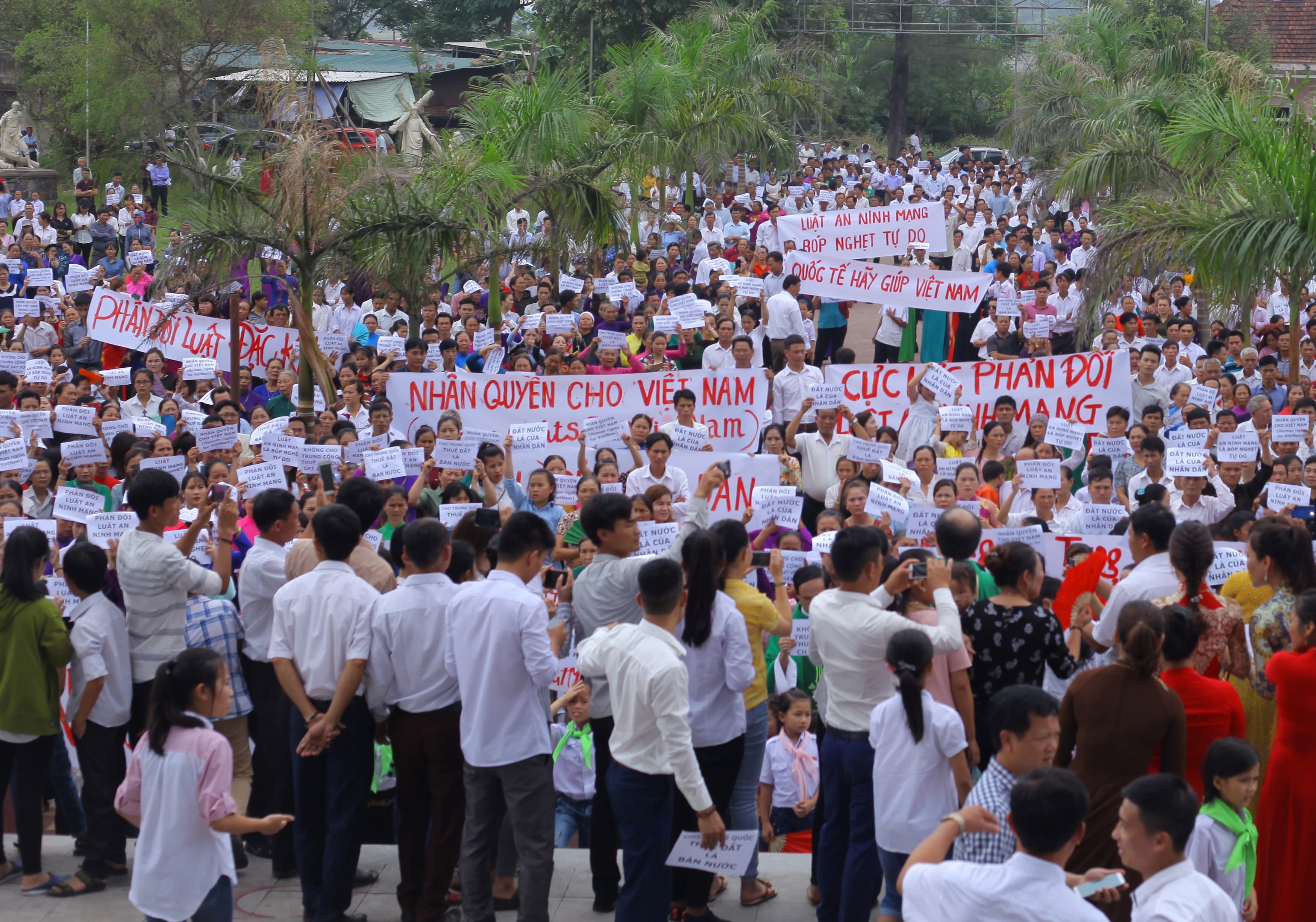 Vietnamese Catholics gather to protest against the Special Economic Zone’s and cyber security’s laws after a Sunday mass at a church in Ha Tinh province, Vietnam June 17, 2018. Photo taken June 17, 2018. (Photo: Reuters)