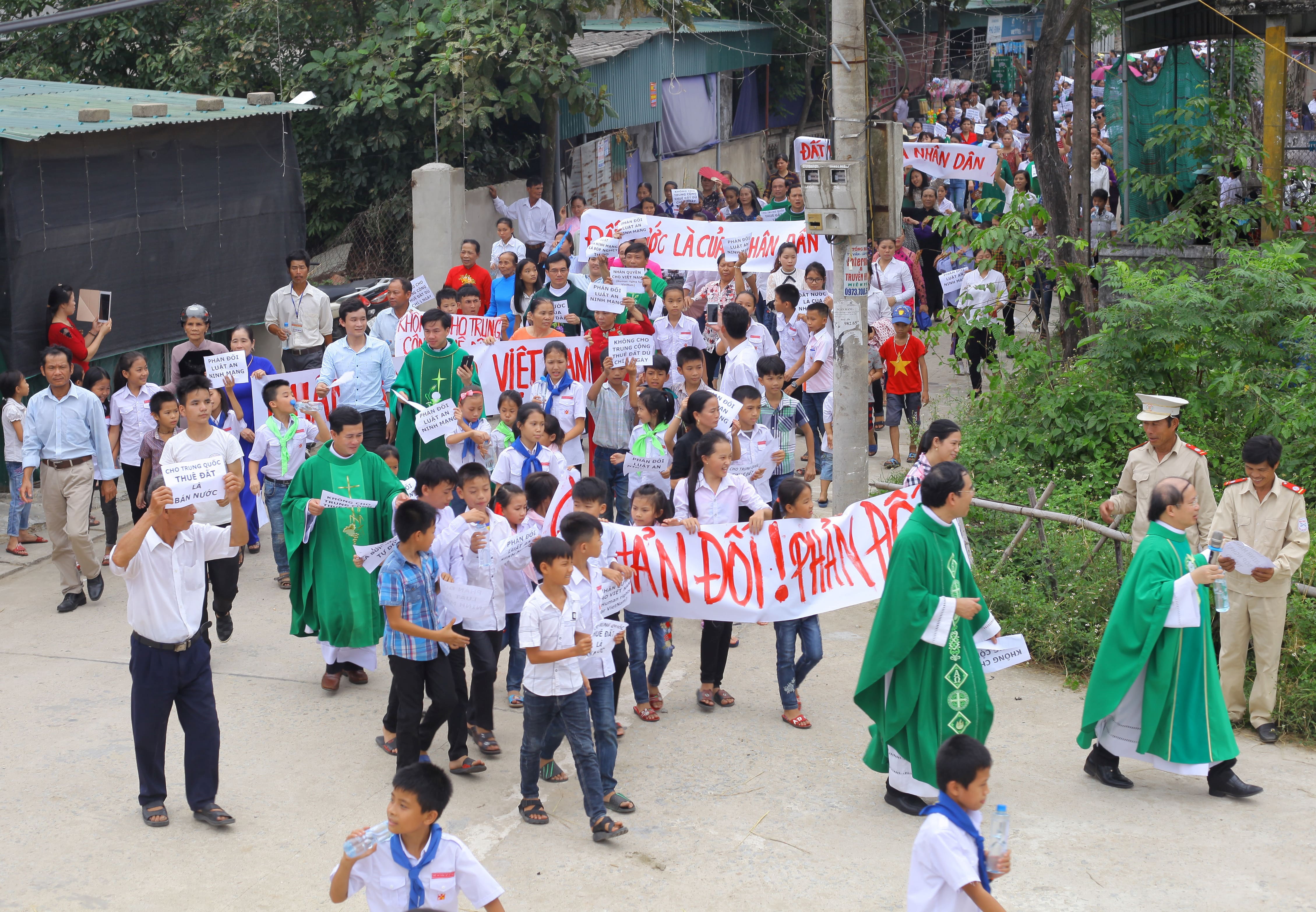 Vietnamese Catholics march to protest against the Special Economic Zone’s and cyber security’s laws after a Sunday mass at a village in Ha Tinh province, Vietnam June 17, 2018. Photo taken June 17, 2018. (Photo: Reuters)
