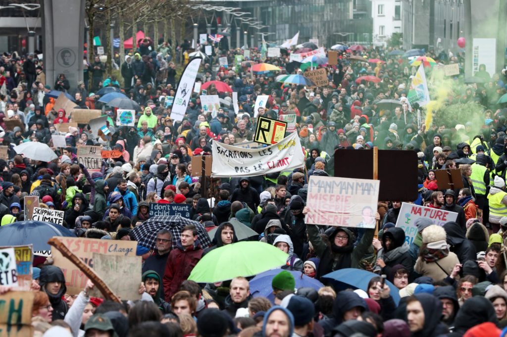 People take part in a march called “Rise for Climate” in Brussels, Belgium, January 27, 2019. (Photo: Reuters)